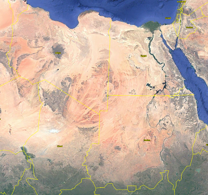 كما أن عادة ما يستخدم المهربون نفس الطرق لكن الصحراوية، تكون عادة محفوفة بالمخاطر عبر منطقة دارفور السودانية إلى الأراضي الجنوبية الليبية. وتُعرف هذه الطرق بأنها سيئة السمعة لتهريب البشر وقطاع الطرق.
